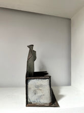 Unique colouring! A wall hanging or sitting metal holder, used to be for a comb + brush, today it can hold its own staying empty, or use to hold receipts or mail!