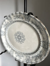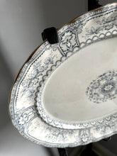 Beautiful platter with a blue/gray pattern + gold trim