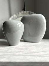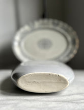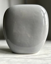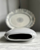 A vintage flat oval ceramic blue/gray coloured vase with a narrow opening for your fresh or faux florals!