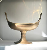 A vintage brass trophy + grecian style footed bowl. The pedestal base adds elegance, while the graceful curves give it an almost ceremonial presence. With an aged patina, it would be great as a centrepiece, fill with every day greenery or seasonal decor!