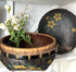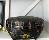 Antique Black Woven Basket, Hand-Painted