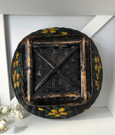Beautiful black woven antique basket, hand-made to hold sewings notions, and today a unique object hand-painted that is also so functional!
