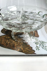 Beautiful divided glass pedestal / footed dish with a thumbprint style pattern. Made by the Indiana Glass Company in Dunkirk, Indiana. Very functional and very attractive!