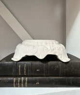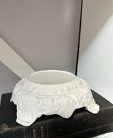 A sweet handmade footed pedestal or base for a candle, or use as a riser for something needing a little height! A couple of small chipping (last 2 photos).